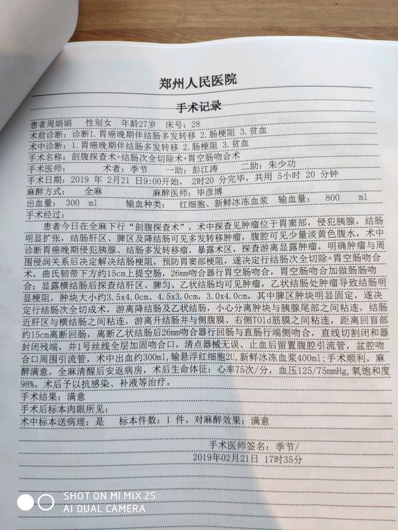这是病历及术后病理报告,懂得人帮忙看看,1化结束了,奥沙利铂加替吉奥,一直感觉不严重,但医生说很不好,
